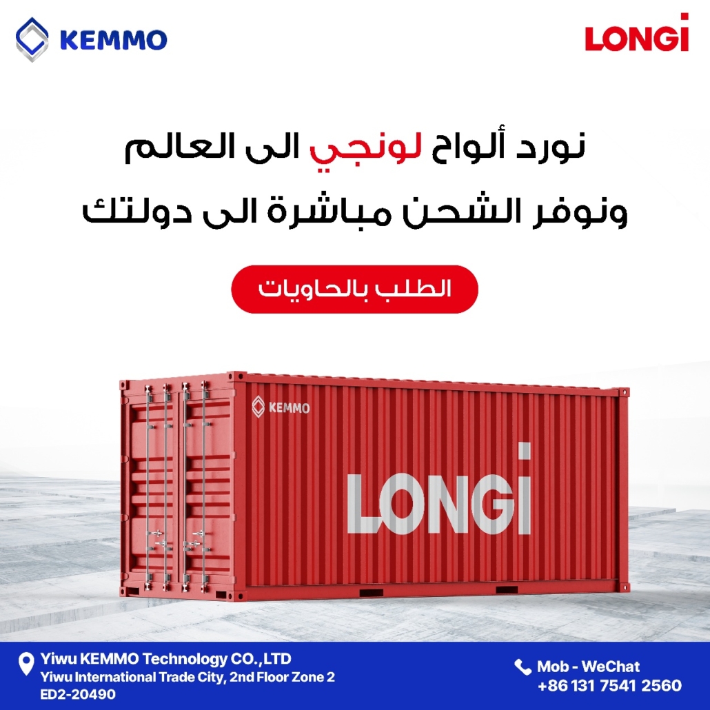 في شركة كيمو KEMMO Technology Co., LTD نحرص على توريد ألواح الطاقة الشمسية الأصلية من لونجي إلى العملاء في مختلف أنحاء العالم. نحن من بين الموزعين الأكثر ثقة في قطاع الطاقة المتجددة ونوفر للشركات والمشاريع الكبرى إمكانية الحصول على ألواح شمسية عالية الكفاءة مصممة لتدوم وتوفر أداءً مميزاً على المدى الطويل. تعتبر لونجي من الشركات العالمية الرائدة في تقنيات الطاقة الشمسية وتتميز بابتكاراتها وجودتها وقدرتها على تحقيق نتائج مستقرة في إنتاج الطاقة.
