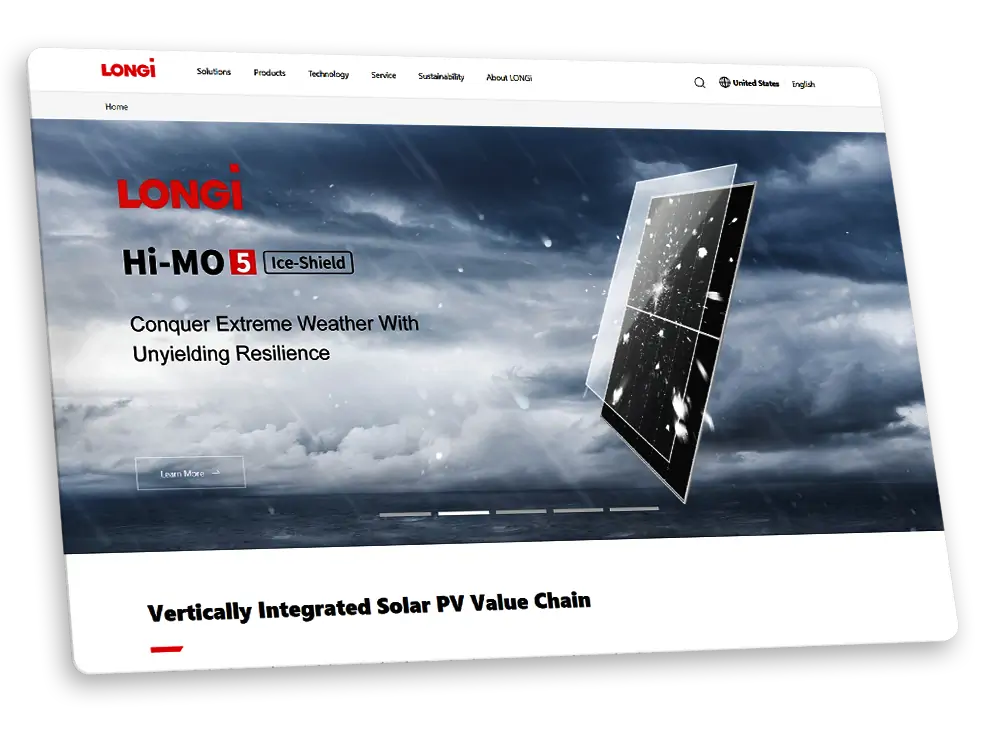 تُعتبر LONGi الشركة العالمية الرائدة في صناعة الألواح الأحادية (Monocrystalline Modules)، وتُعرف بتقنياتها المتطورة في كفاءة التحويل واستدامة الأداء.